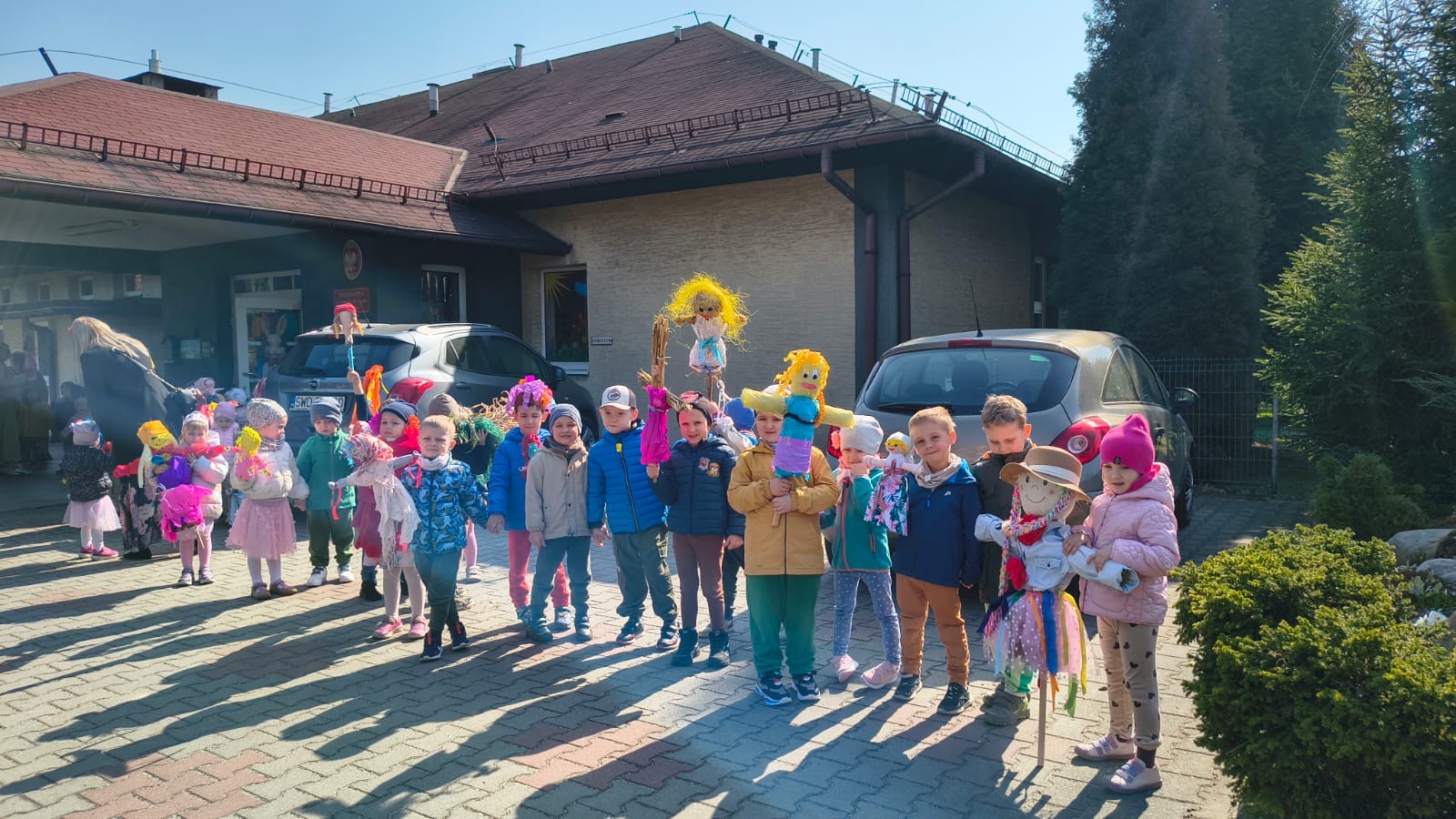 Podczas symbolicznego pożegnania zimy przedszkolaki głośno witały wiosnę, ciesząc się z nadchodzących cieplejszych dni. Był to nie tylko moment pełen radości, ale także piękna lekcja tradycji i współpracy.