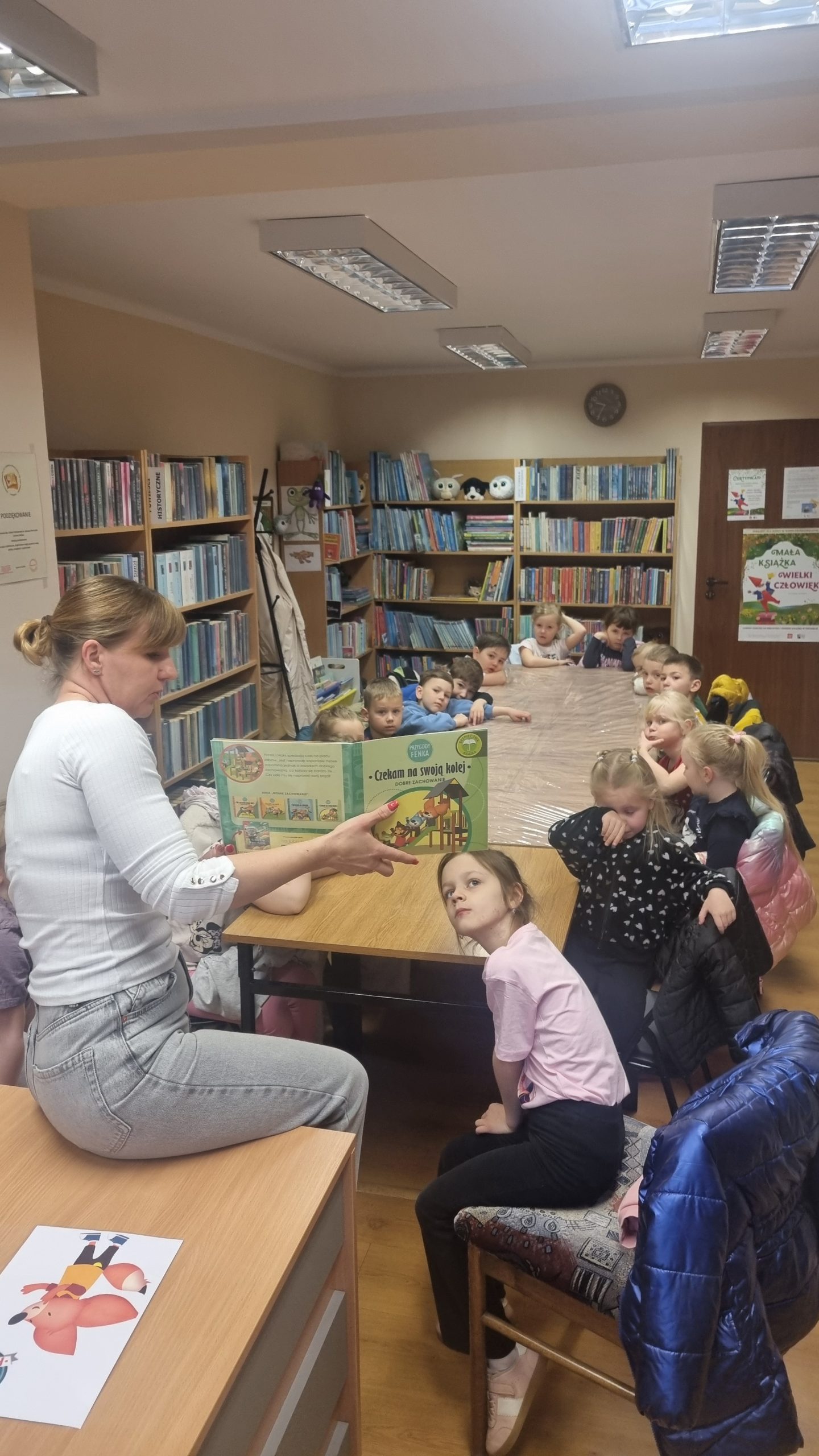 W poniedziałek 16 marca grupa Pszczółki kolejny raz odwiedziła bibliotekę w ramach akcji „Czytam i uczę się z Liskiem Fenkiem w Bibliotece Gminnej”. Podczas zajęć dzieci wysłuchały opowiadania „Czekam na swoją kolej” z serii Przygody Fenka, które stało się punktem wyjścia do rozmowy o cierpliwości i radzeniu sobie z oczekiwaniem.