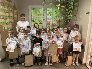 Dodatkową atrakcją był konkurs na najładniejszą ozdobę wielkanocną, w którym udział wzięło wiele dzieci. Z dumą informujemy, że troje uczestników zostało nagrodzonych i zajęło miejsca na podium, wyróżniając się szczególną pomysłowością oraz starannością wykonania swoich prac.