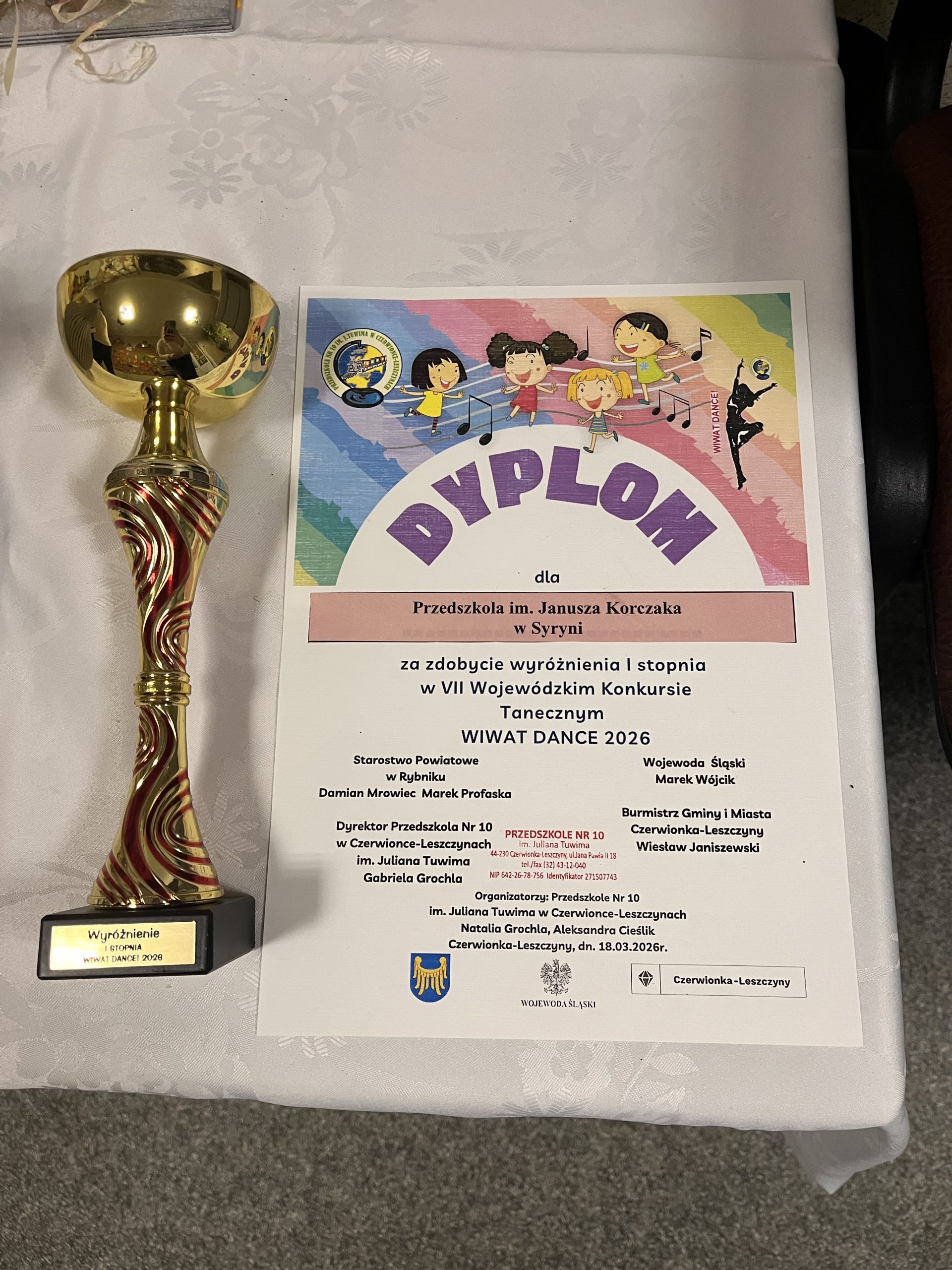 18.03.2026 r. zespół taneczny The Klaszczers zdobył Wyróżnienie I stopnia w konkursie tanecznym w Centrum Kulturalno-Edukacyjnym w Czerwionce-Leszczynach. Zespół przedstawił choreografia taneczną pt. ,,Dziecięcy Beat”.