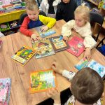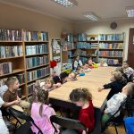 Wizyty odbywają się cyklicznie w każdy poniedziałek. Grupy odwiedzają bibliotekę wymiennie – co tydzień inna grupa ma okazję spotkać się z książką i bibliotekarzem. Pierwsze szlaki przetarły już „Pszczółki”, „Sówki” i „Odkrywcy” które zapoznały się z księgozbiorem. Z niecierpliwością czekamy na kolejne poniedziałkowe spotkania!