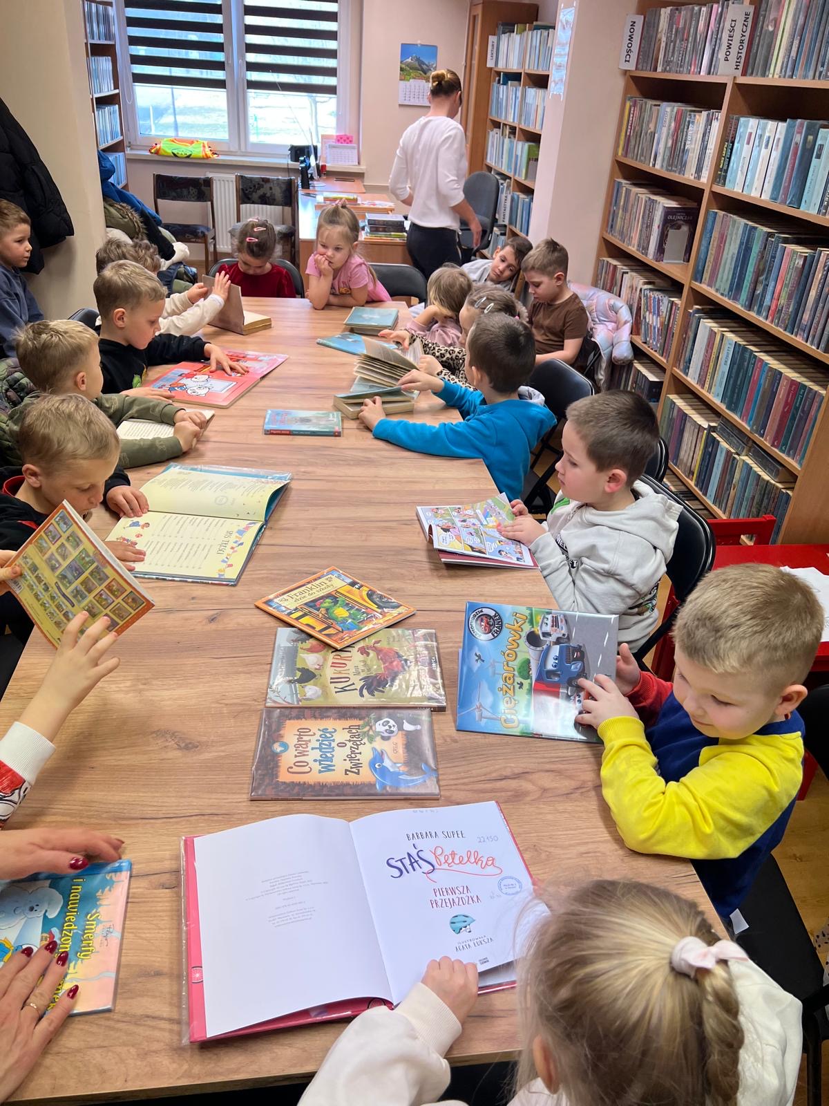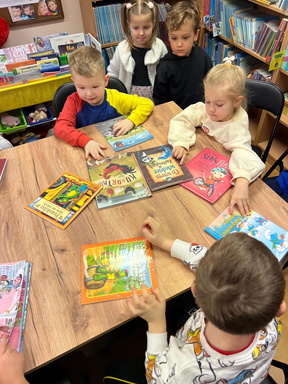 Wizyty odbywają się cyklicznie w każdy poniedziałek. Grupy odwiedzają bibliotekę wymiennie – co tydzień inna grupa ma okazję spotkać się z książką i bibliotekarzem. Pierwsze szlaki przetarły już „Pszczółki”, „Sówki” i „Odkrywcy” które zapoznały się z księgozbiorem. Z niecierpliwością czekamy na kolejne poniedziałkowe spotkania!